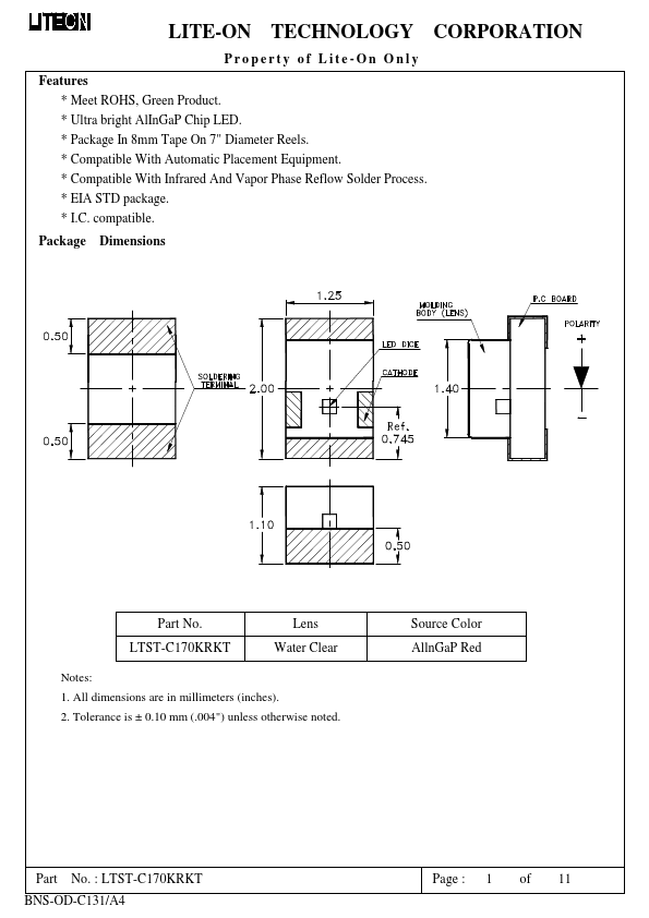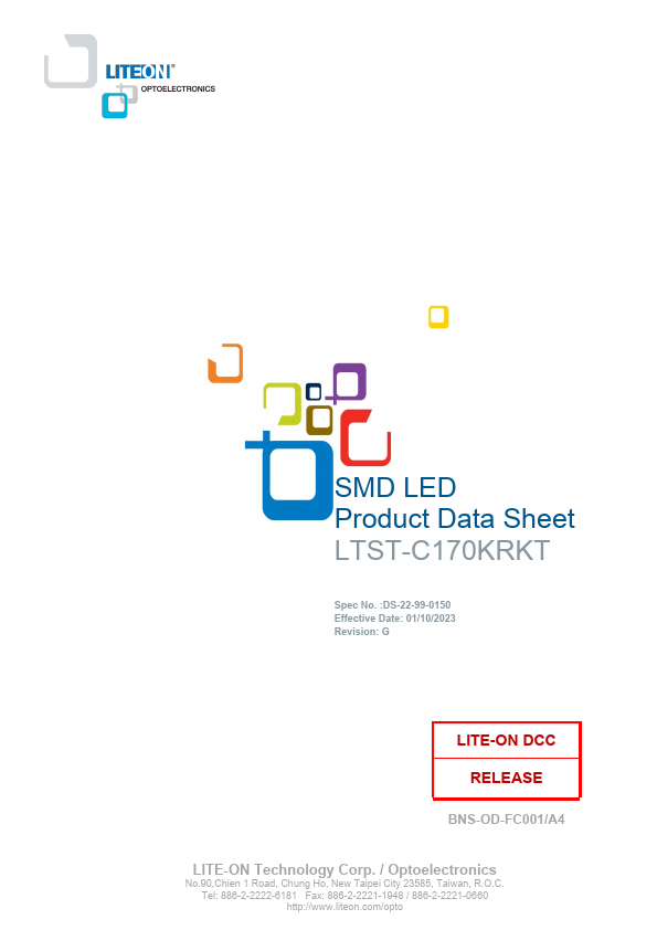 SMD LED Product Data Sheet LTST-C170KRKT Spec No. :DS-22-99-0150 Effective Date: G LITE-ON DCC RELEASE BNS-OD-FC001/A4 LITE-ON Technology Corp.