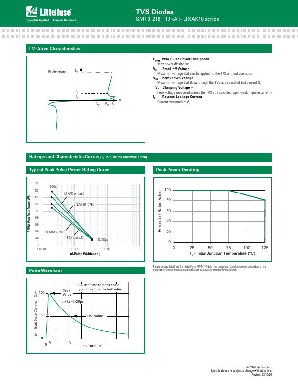 technologies by virtue of the Littelfuse Foldbak technology, which provides a clamping voltage lower than the avalanche voltage (but above the rated working voltage).