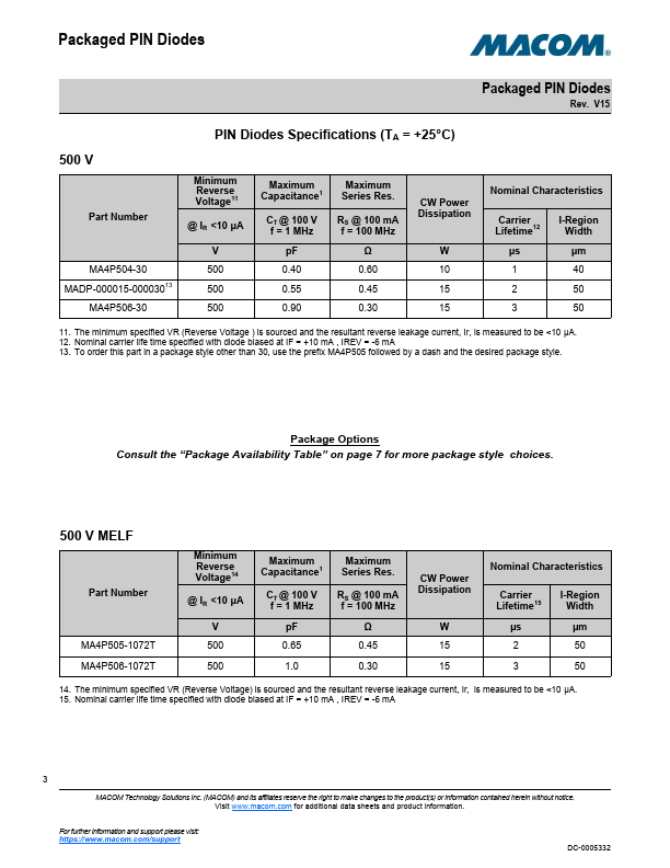 and Applications MA’s broad line of packaged PIN diodes enpass a prehensive range of and package outlines. This diverse union of semiconductor technology and chip packaging gives considerable flexibility to the circuit designer. The fast switching series of packaged PIN diodes utilize a thin I-region, silicon oxide or glass passivated chip which provides for low leakage current and low insertion loss.