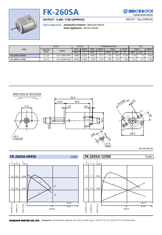 FK-260SA-09450 datasheet by MABUCHI MOTOR.