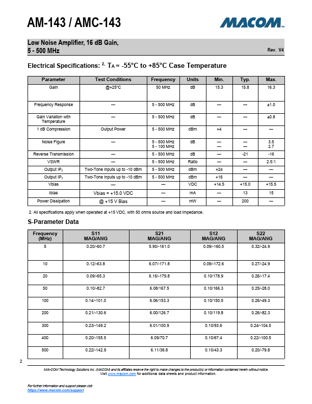 M/A-COM’s AM-143 is a coupler feedback amplifier with low noise figure and high intercept points for the low bias current.