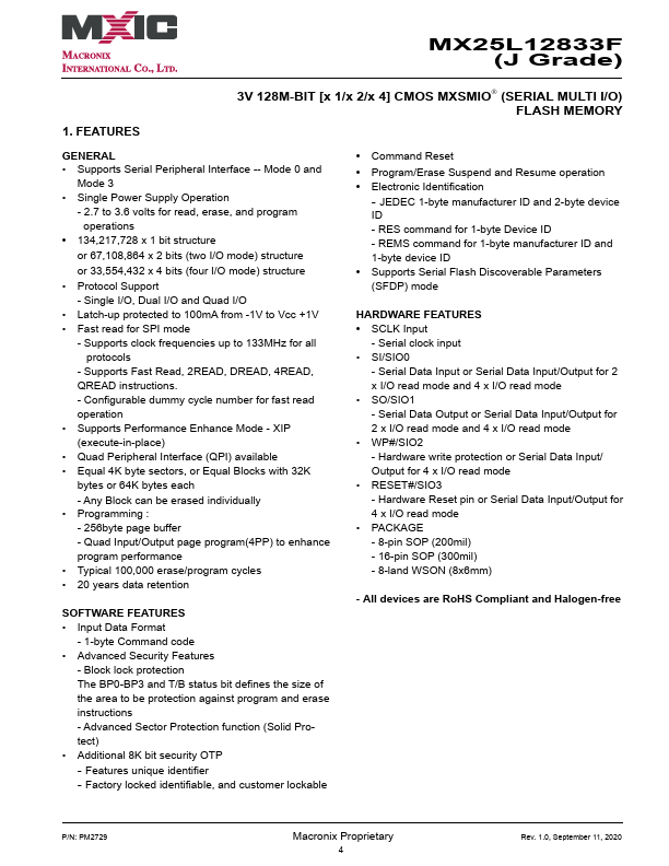 MX25L12833F-J Key Features