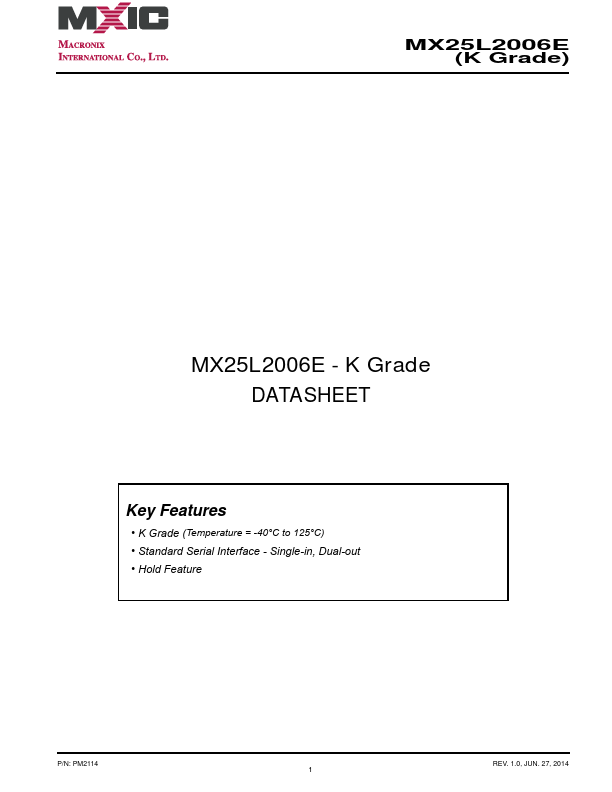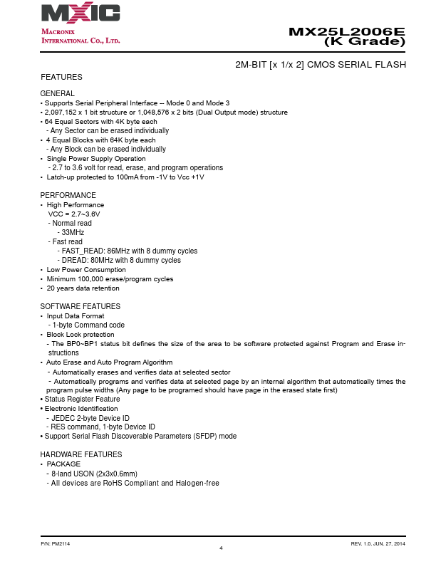 MX25L2006E-K Key Features