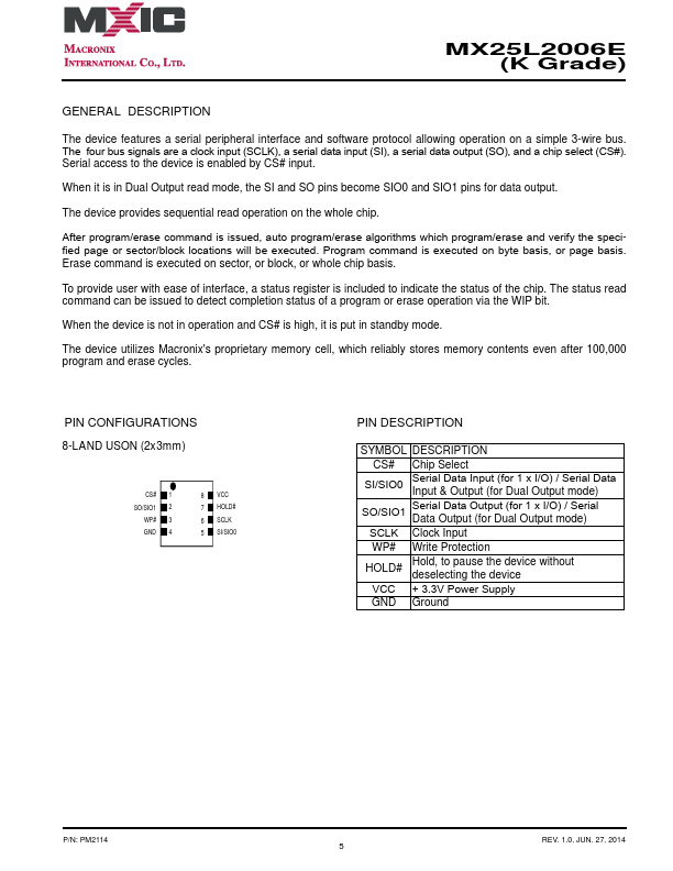 MX25L2006E-K Overview