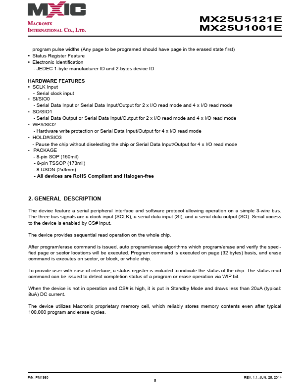 - 1.65 to 2.0 volt for read, erase, and program operations