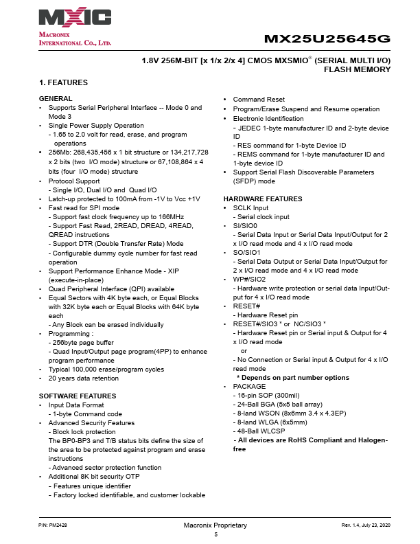 - Single I/O, Dual I/O and Quad I/O