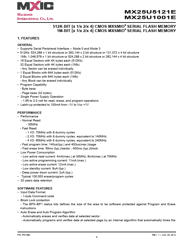 MX25U5121E Key Features