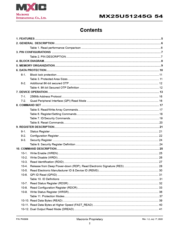Overview: MX25U51245G 54 MX25U51245G 54 1.8V, 512M-BIT [x 1/x 2/x 4] CMOS MXSMIO® (SERIAL MULTI I/O) FLASH.