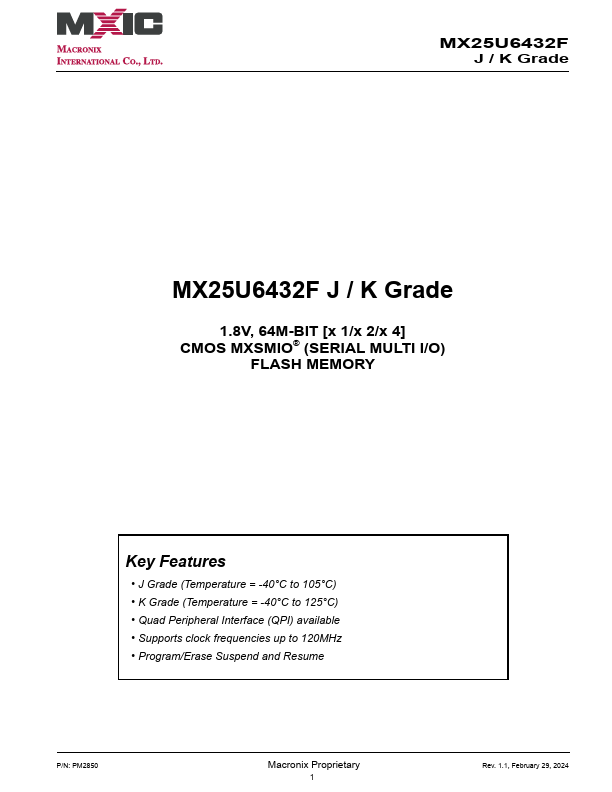 MX25U6432F Overview