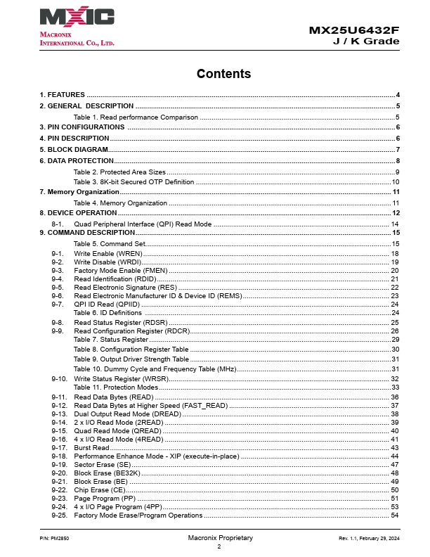 ...................................................................................................................................... Read performance parison.....................................................................................................5 3. PIN CONFIGURATIONS...