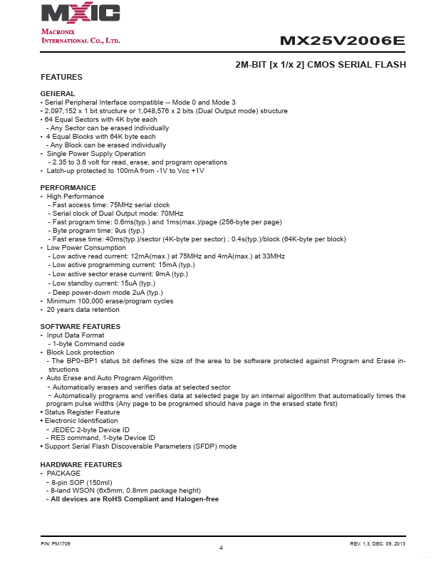 - 2.35 to 3.6 volt for read, erase, and program operations