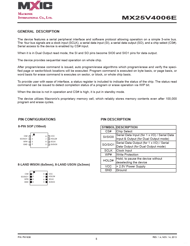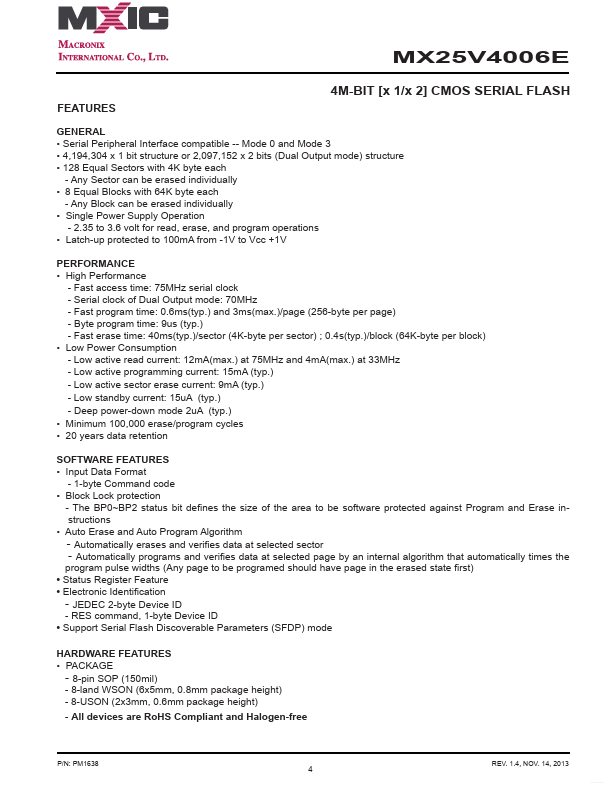 MX25V4006E Overview