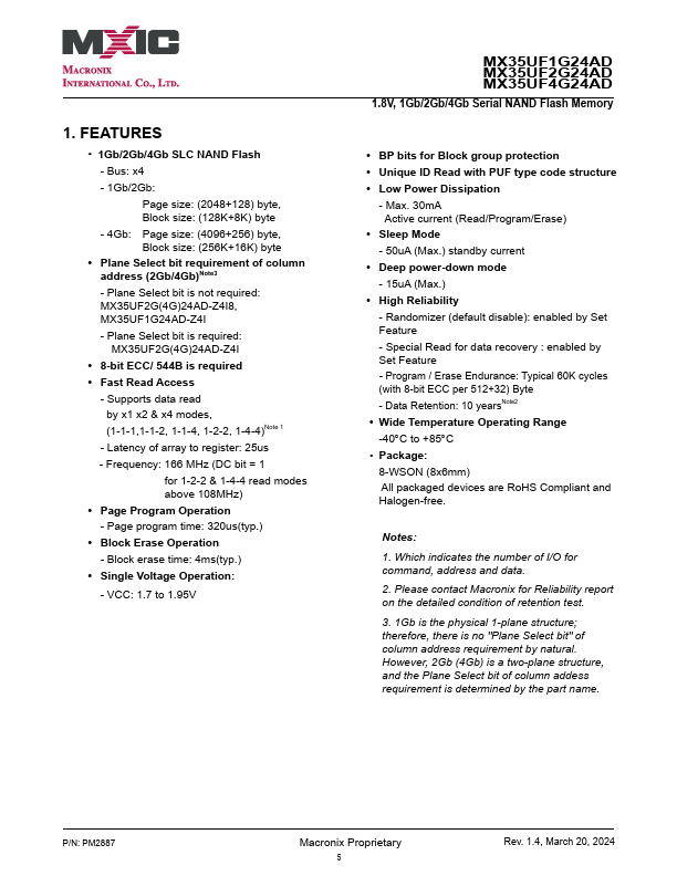 - Plane Select bit is not required: MX35UF2G(4G)24AD-Z4I8, MX35UF1G24AD-Z4I