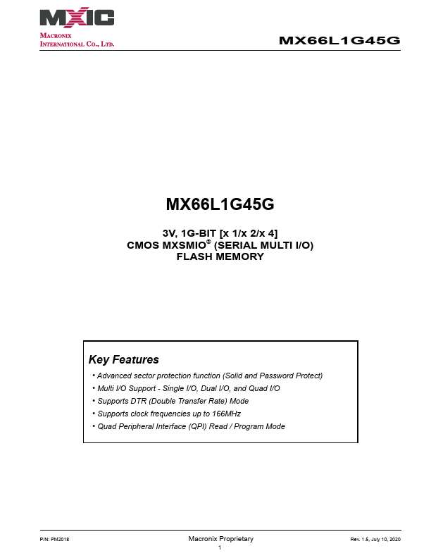 MX66L1G45G Key Features