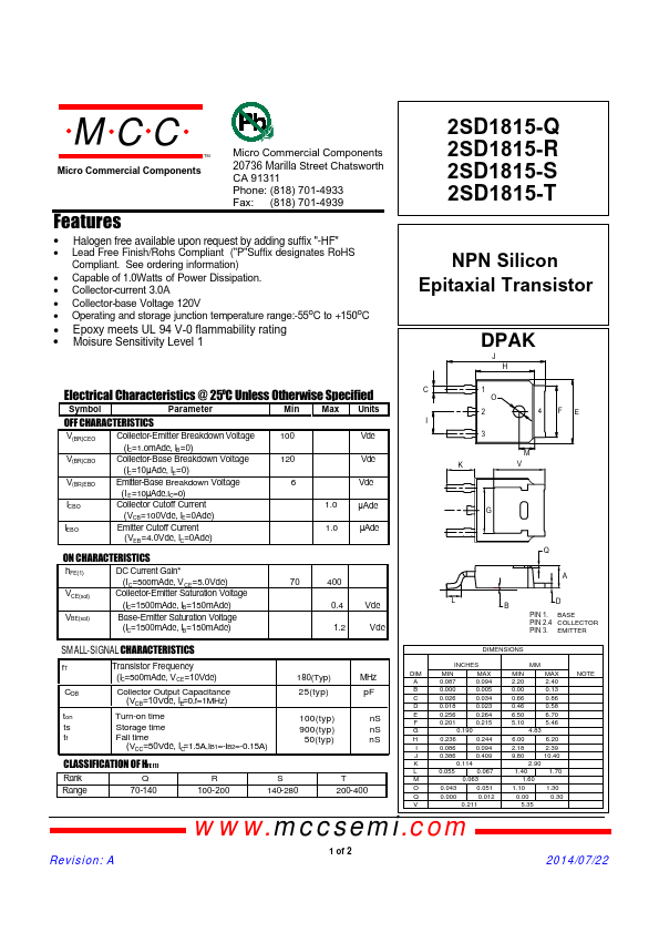 2SD1815 | NPN Epitaxial Planar Silicon Transistors | GME |