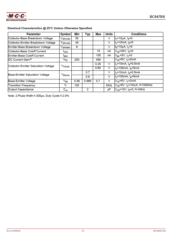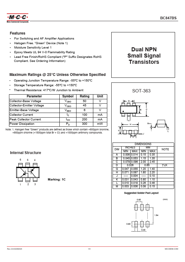 • For Switching and AF Amplifier Applications • Halogen Free. “Green” Device (Note 1) • Moisture Sensitivity Level 1 • Epoxy Meets UL 94 V-0 Flammability Rating • Lead Free Finish/RoHS Compliant ("P" Suffix Designates RoHS