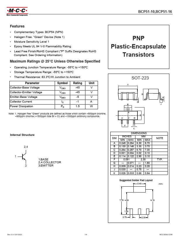 | BCP51-10 | PNP Plastic-Encapsulate Transistors |