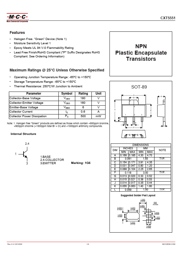 CXT5551 | NPN Silicon Epitaxial Planar Transistor | GME |
