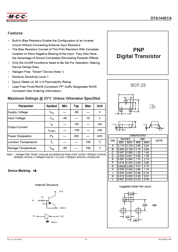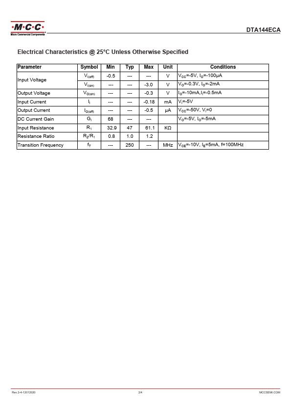 DTA144ECA | PNP Digital Transistors | SeCoS |