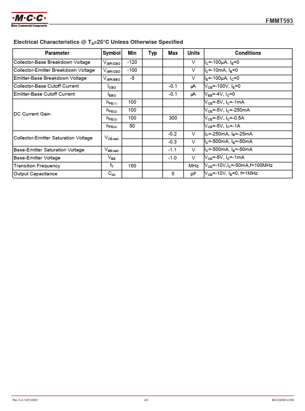 • Thermal Resistance: 500℃/W Junction to Ambient Parameter Collector-Base Voltag.