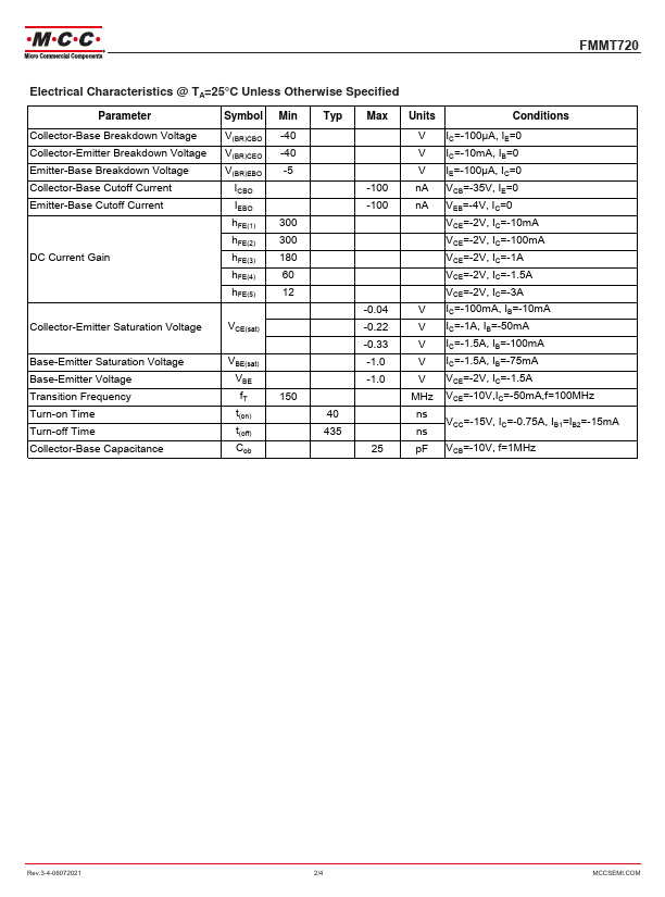 FMMT720 | PNP SILICON LOW SATURATION TRANSISTOR | Diodes |