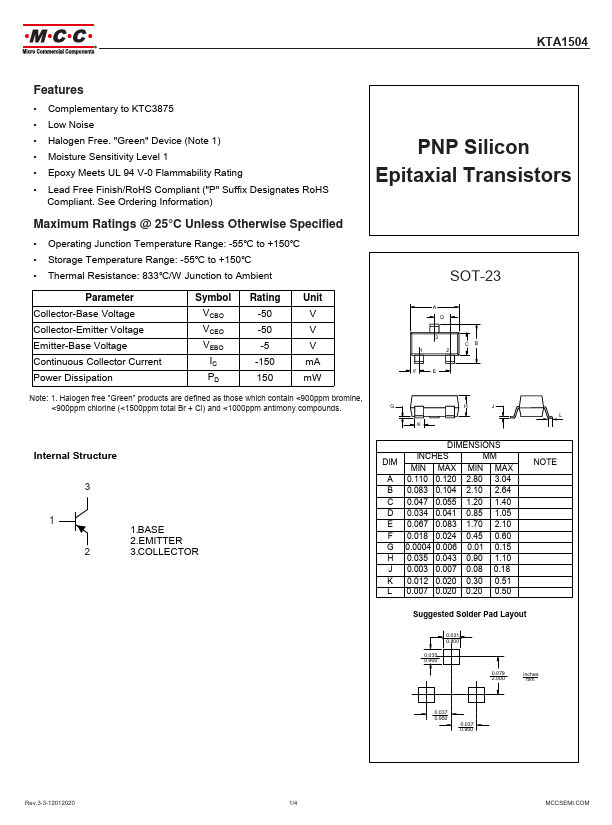 KTA1504 | PNP General Purpose Transistors | WEITRON |