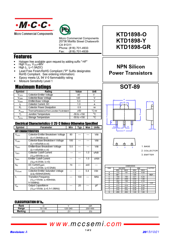| Datasheet | KTD1898-MCC.pdf |