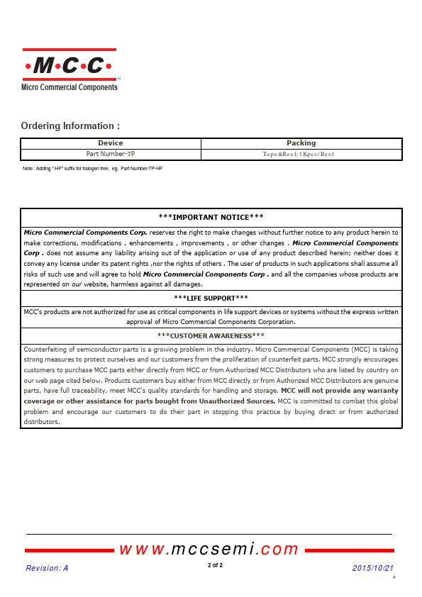 Overview: MCC TM Micro Commercial Components omponents 20736 Marilla Street Chatsworth !"# $ % !