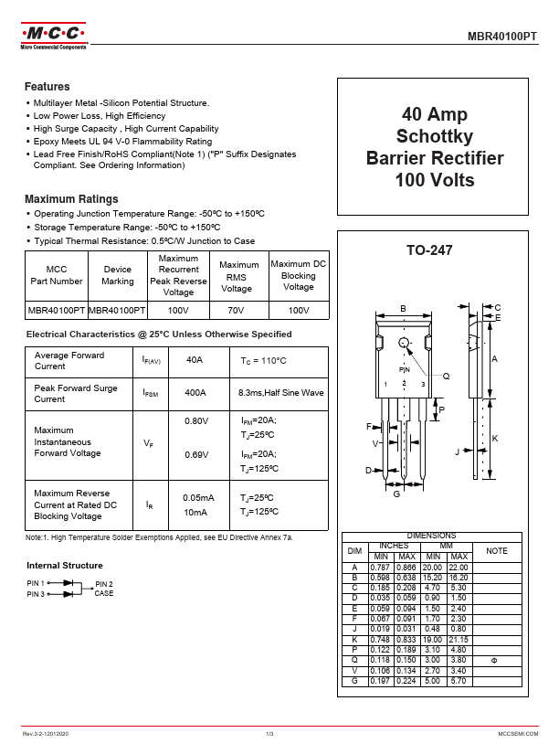 | Datasheet | MBR40100PT-MCC.pdf |