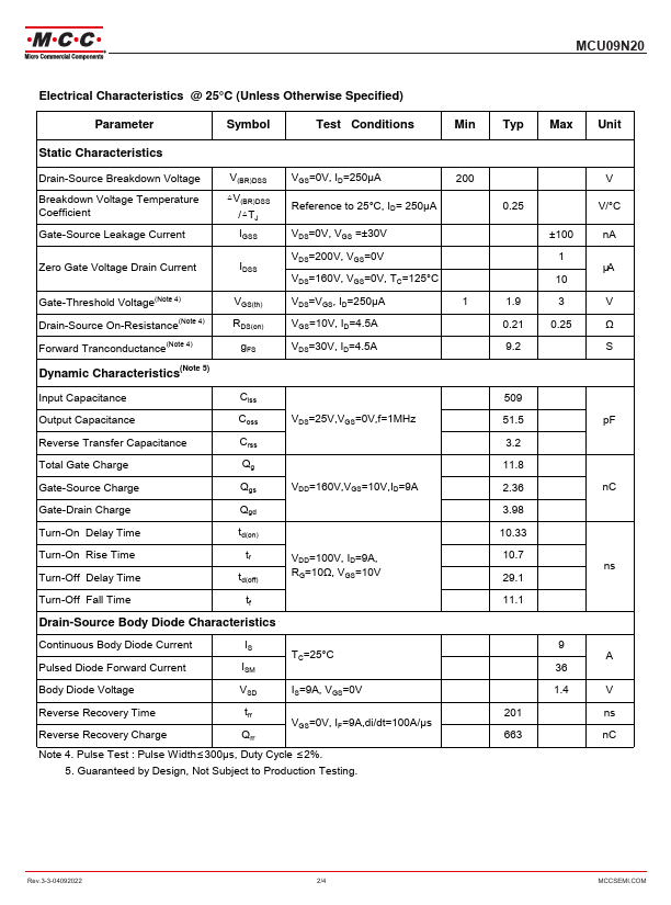 • Fast Switching • Improved dv/dt Capability • Excellent Package for Good Heat Dissipation • Epoxy Meets UL 94 V-0 Flammability Rating • Moisture Sensitivity Level 1 • Halogen Free Available Upon Request By Adding Suffix "-HF" • Lead Free Finish/RoHS Compliant ("P" Suffix Designates RoHS
