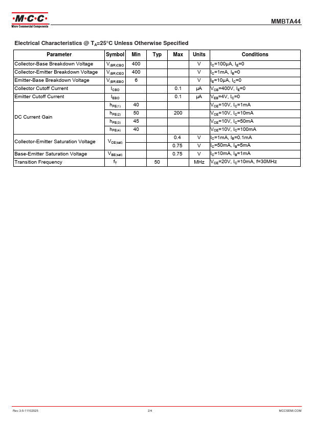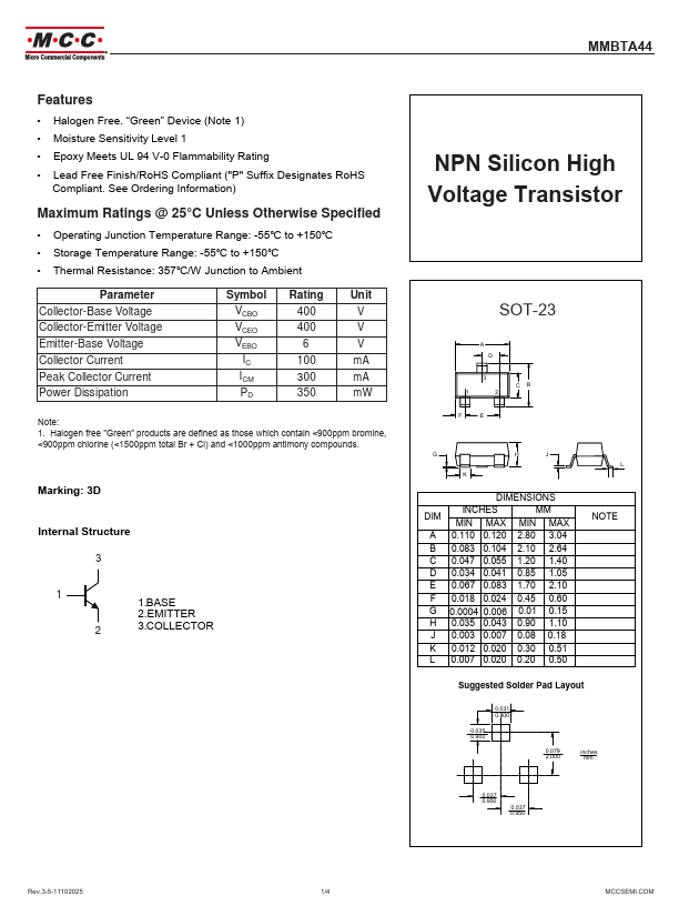 MMBTA44 | NPN HIGH VOLTAGE TRANSISTOR | Pan Jit International |