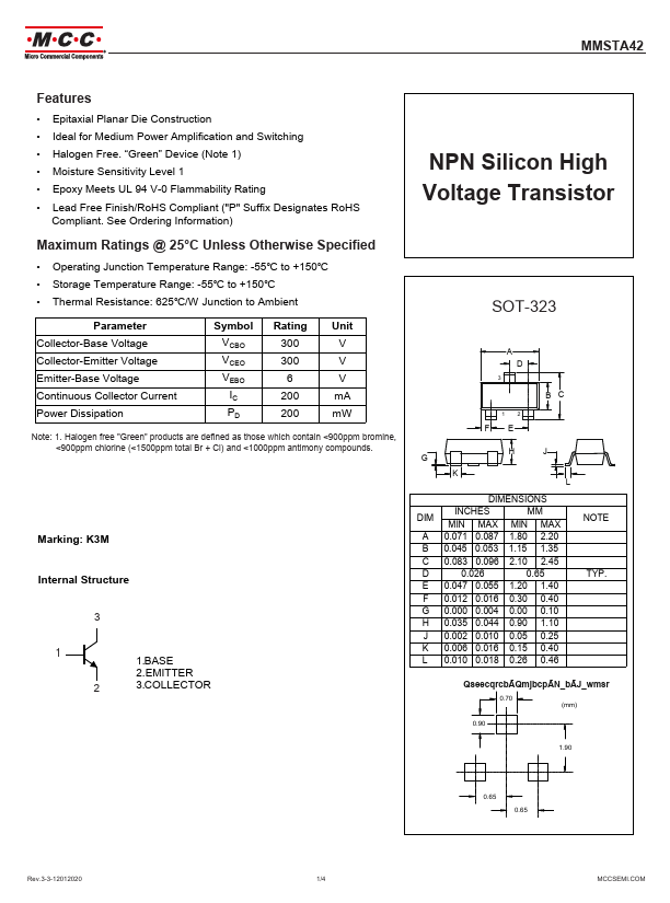MMSTA42 | NPN SMALL SIGNAL SURFACE MOUNT TRANSISTOR | Diodes Incorporated |