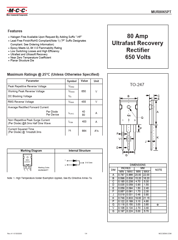 - Lead Free Finish/RoHS pliant(Note 1) ("P" Suffix Designates pliant. See Ordering Information)