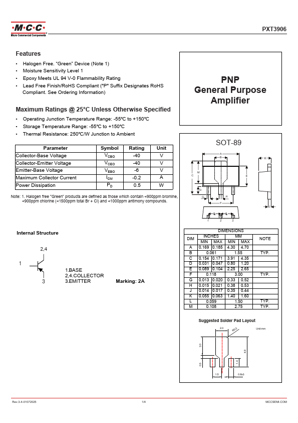 - Lead Free Finish/RoHS pliant ("P" Suffix Designates RoHS