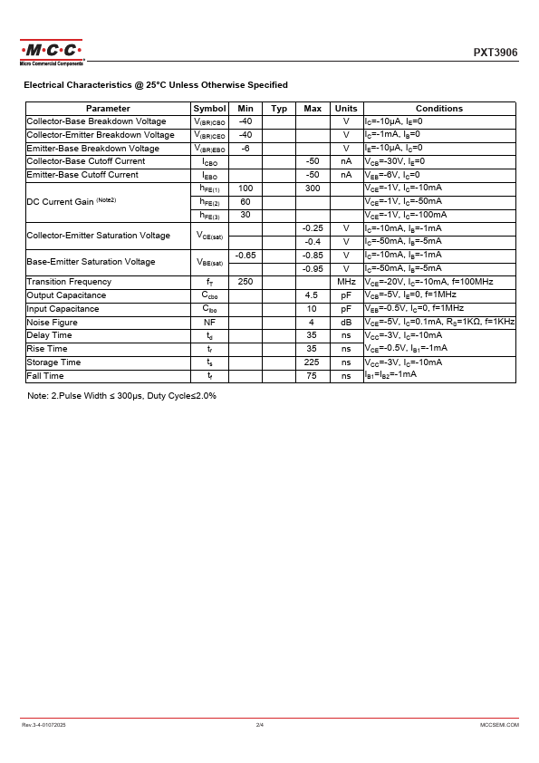 - Thermal Resistance: 250℃/W Junction to Ambient