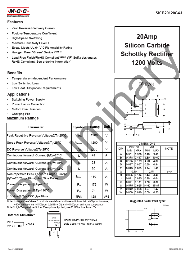 - Lead Free Finish/RoHS pliant(Note 2) ("P" Suffix designates