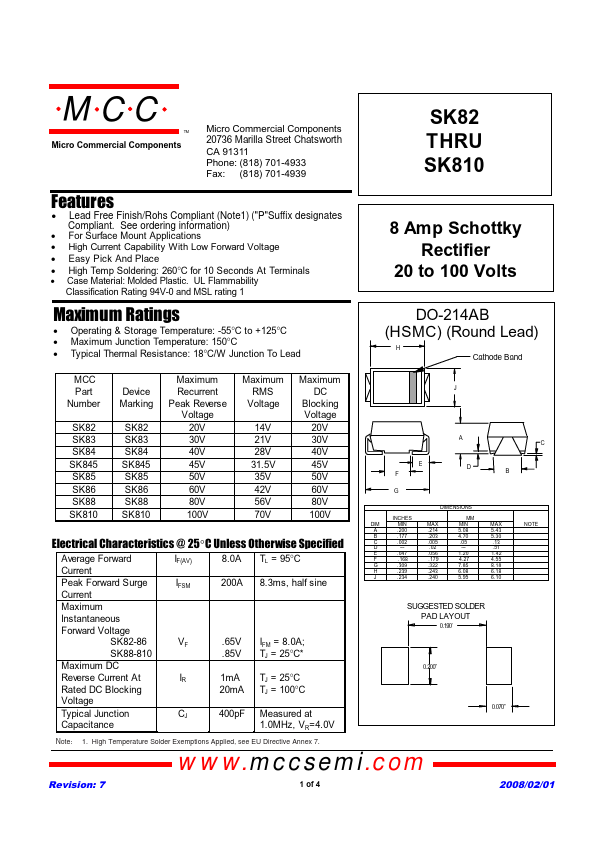 SK845 Datasheet Summary