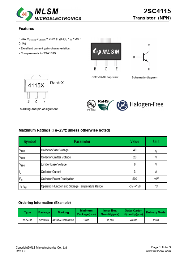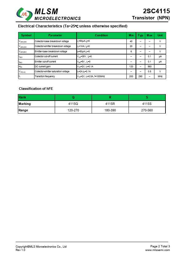 2SC4115. For precise diagrams, and layout, please refer to the original PDF.