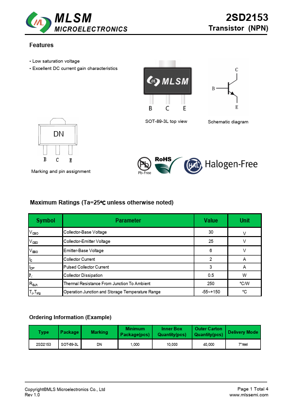 2SD2153 | NPN Plastic Encapsulated Transistor | SeCoS |