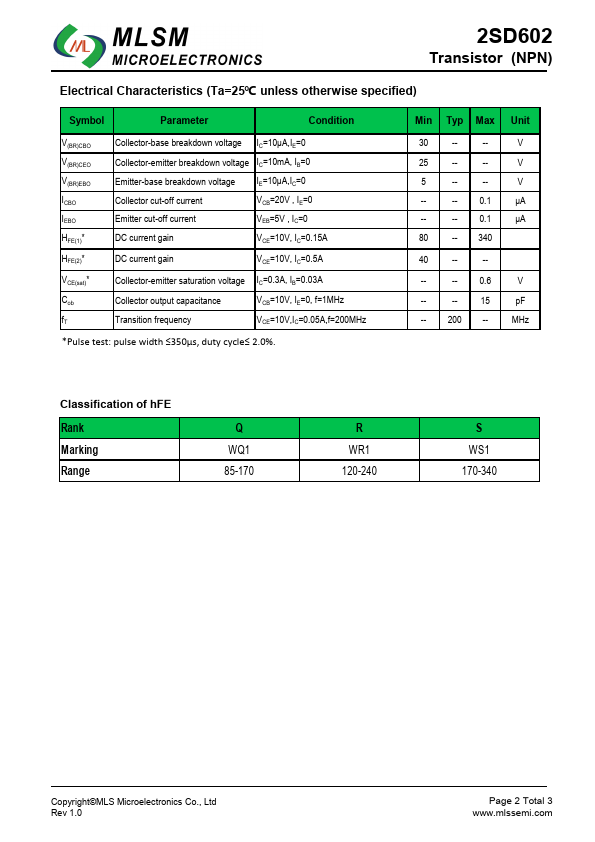 2SD602 | NPN Transistor | SeCoS |