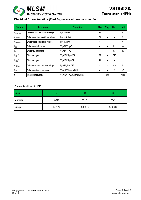 2SD602A | NPN Transistor | SeCoS |