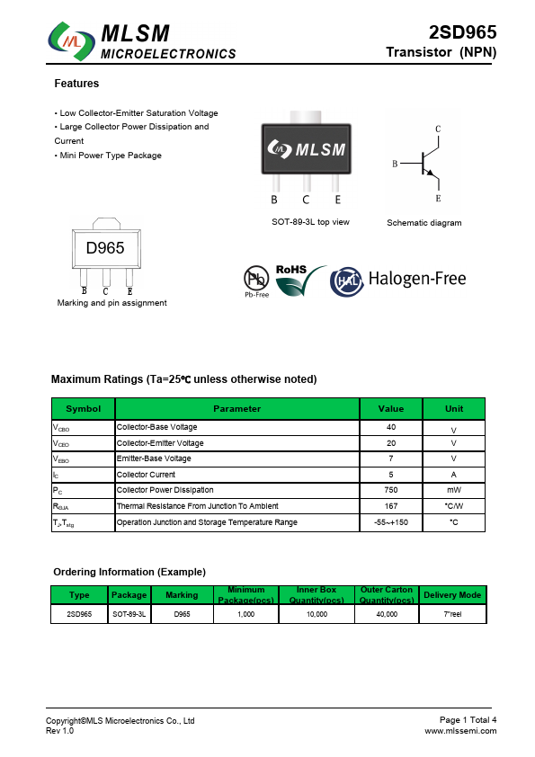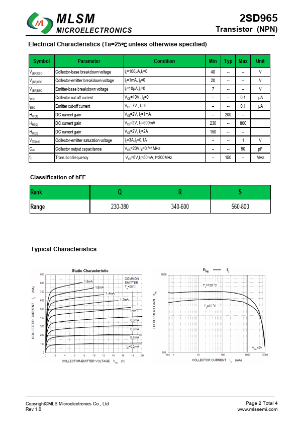 2SD965 | NPN Transistor | Dc Components |