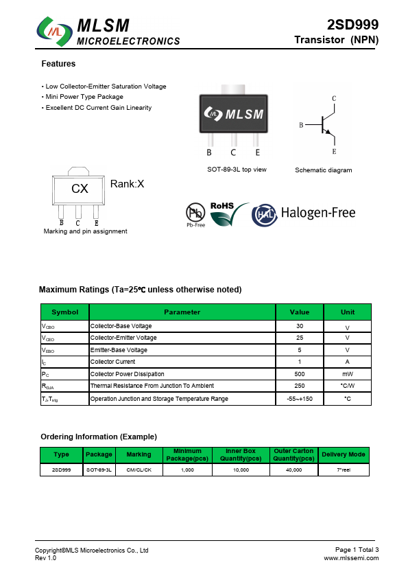 2SD999 | NPN Silicon Transistor | Kexin |