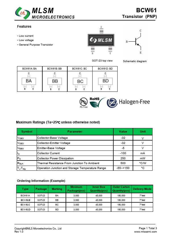 | BCW61D | (BCW61x) Surface Mount General Purpose Si-Epi-Planar Transistors | Diotec Semiconductor |