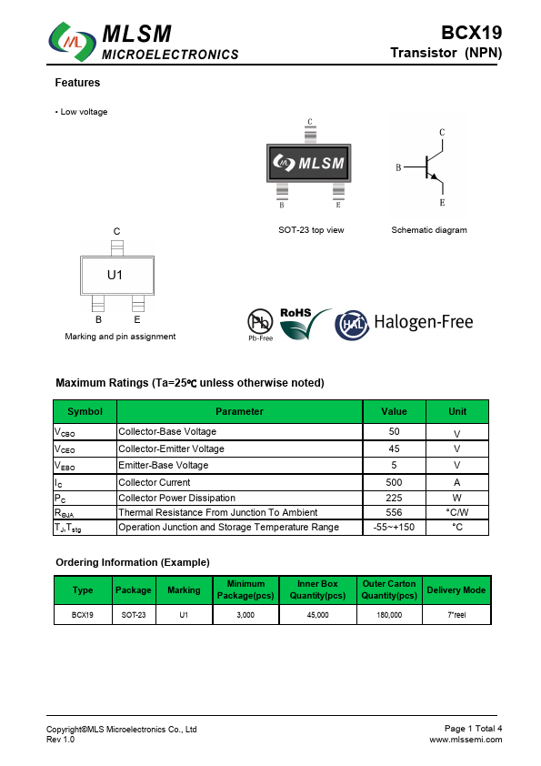 BCX19 | SMALL SIGNAL NPN TRANSISTOR | STMicroelectronics |