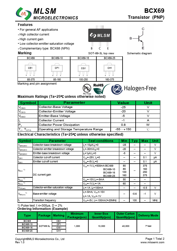 | BCX69-16 | PNP Transistor |