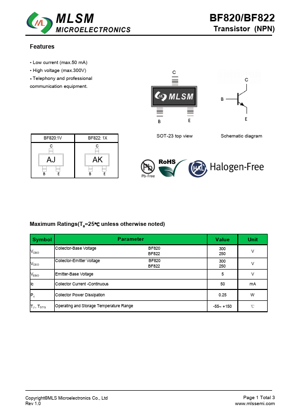 BF822 | NPN High-Voltage Transistors | Kexin |