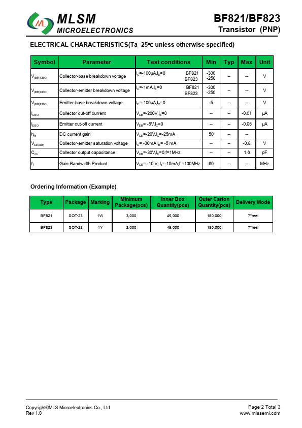 BF823 | PNP High-Voltage Transistors | GME |