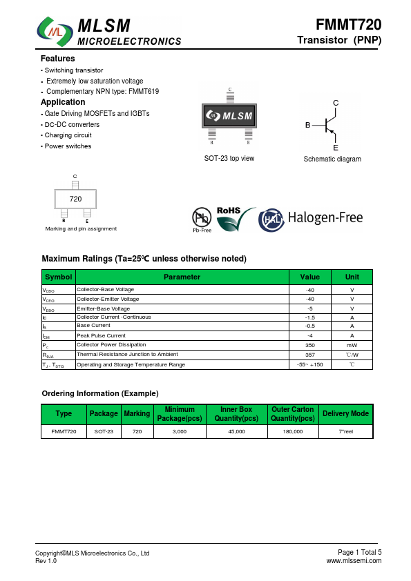 FMMT720 | PNP Silicon Planar High Performance Transistor | MCC |