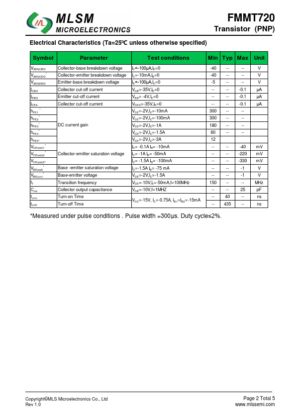 FMMT720 | PNP Silicon Epitaxial Planar Transistor | GME |